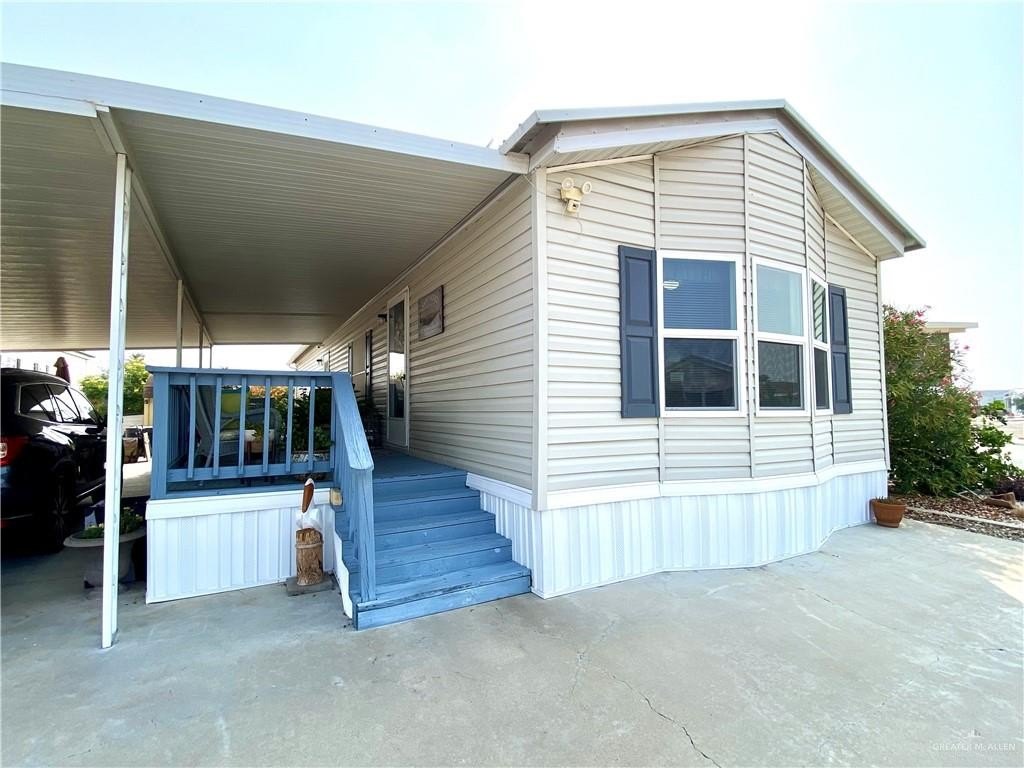 This beautifully maintained, 2-bedroom, 2-bathroom home has a front kitchen that provides lots of natural lighting, cabinet and counter space, a farm sink, and the microwave and dishwasher replaced 2024! Beautiful built-in designer glass cabinets in the kitchen provide extra storage. Spacious living room. Decorative ceilings with fans throughout. In-house laundry. The master suite is comfortable with plenty of closet space as well as built-in drawers, a bidet toilet, new sinks, a step-in shower, a double vanity, and lots of cabinets for linens. Cozy guest bedroom with large closet. Guest bathroom has a shower/tub combo, a new high-rise toilet, and a new sink. The home offers keyless entry, Alexa smart home devices, and new tip-out windows (2023). The exterior provides a deck, carport, low maintenance rock yard, security camera, dusk to dawn exterior lighting, gutters, storage shed, and even shades on west side of the carport. With the roof and AC installed in 2018.