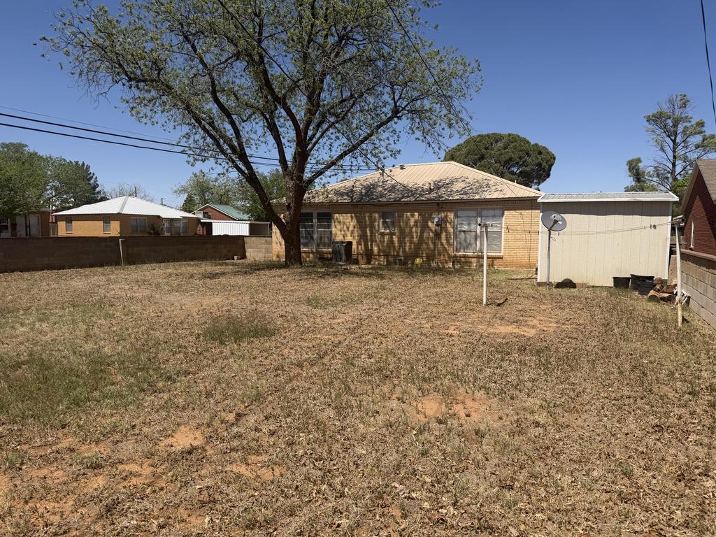This is a solid brick home on a large corner lot. It has a metal roof, 1 car garage, metal carport, storage and a large back yard. It is a 2 bedroom 1 bath and there is 1096 sq.ft. of living area. It has central heat and air. The rooms are nice size but could use some TLC. This is a great starter home or a fixer upper for an investment property.