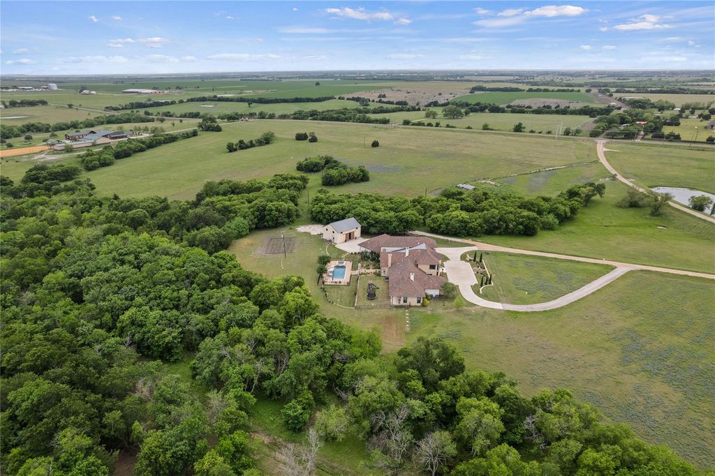 This gorgeous Italian Villa, designed by the renowned Richard Drummond Davis and featured on the cover of Texas Living, is secluded on 18 acres that perfectly blends timeless elegance with modern luxury, bringing the benchmark of Mediterranean style right to the heart of Ellis County! Highlighted by a dramatic entryway, the prominent front turret houses the statement staircase. The foyer opens directly into the expansive family room, dominated by a vaulted ceiling with antique roughhewn wooden beams salvaged from a local barn. The same rough-faced limestone used on the exterior also define the entry & archways in the living and kitchen. Entertain effortlessly with a chef's kitchen to die for flowing effortlessly into several dining spaces and living room including both a walk-in pantry and separate butler's pantry. The primary wing features light gleaming in from windows on 3 sides, a fireplace, French doors providing access to the pool, backyard, covered outdoor kitchen and dining areas. Few properties can match the design and functionality of the primary bath and 2 primary closets. Each bedroom has its own ensuite bath AND there's Texas' most relaxing massage room. Upstairs you'll find the office, guest quarters and the massive media room. Step outside to your personal oasis; a sparling pool with a one-of-a-kind slide, separate spa, enormous, covered patio with a 3rd fireplace and outdoor kitchen built for hosting unforgettable gatherings 12 months a year. It doesn't stop there with a detached barn offering extensive storage and versatility easily accommodating 4 more vehicles PLUS your boat, RV and ATV. This is more than a home- it's private estate where luxury, space and lifestyle come together in perfect harmony.