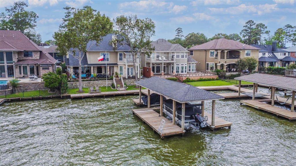 Experience the epitome of waterfront living at Lake Houston! Stunning, custom-reimagined luxury home in the prestigious Walden on Lake Houston ! This elegant waterfront property boasts 4 spacious bedrooms, 3 full bathrooms, & approximately 3,400 square feet of beautifully designed living space. This exquisite two-story home features an open-concept living area with a gourmet island kitchen, complete with stainless steel KitchenAid appliances & rich wood flooring. The expansive glass windows & doors allow natural light to flood the home throughout the day, enhancing its bright & airy ambiance. Enjoy the luxury of two master suites, one on each floor, both offering serene soaking tubs, separate showers, double vanities, & large walk-in closets. Outdoors, you’ll find resort-style amenities including multiple outdoor living areas, a fully equipped outdoor kitchen, & vast green spaces. With your own private dock, this property truly has it all. Schedule Ur Private VIP Showing Today !