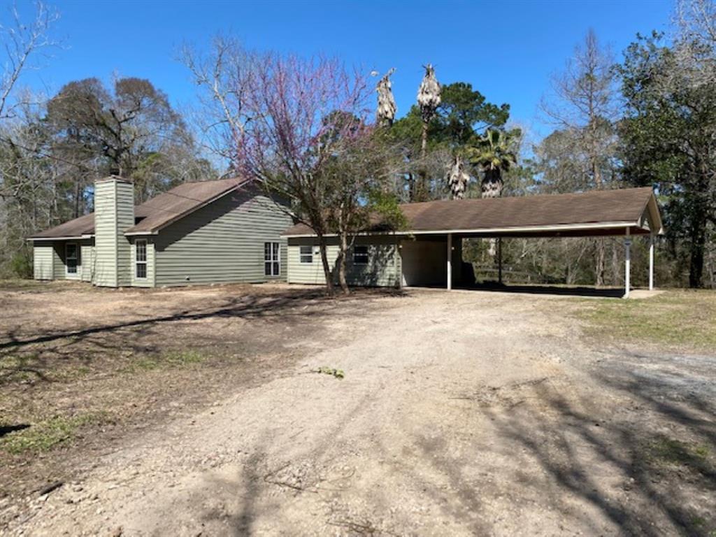 2 ACRES ON A QUIET STREET! Not in Flood Zone! 3 bedroom 2 bath with a loft (great space for an office or game room). The Kitchen has views of the forest behind the home and the dining room is open to the living room. The living area has high ceilings and a cozy fireplace. Large backyard with pool and spa (Pool and Spa are not currently working) with potential to be your very own private oasis. 1 Acre lot next door is also for sale and can be purchased with this property.