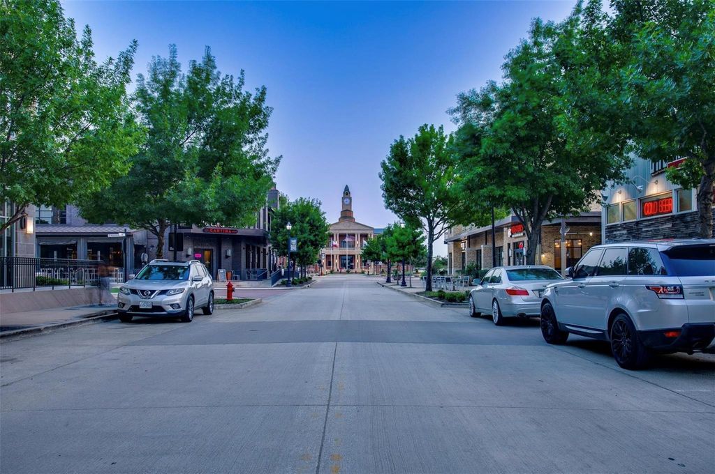 Experience elevated living in the heart of downtown Roanoke with this stunning brownstone townhome ideally positioned on a prime lot in the highly sought-after City Center community. Blending luxury finishes, thoughtful upgrades, and an unbeatable walkable location, this residence offers a true lock-and-leave lifestyle just steps from dining, nightlife, and entertainment. Inside, soaring ceilings and designer details create an upscale yet inviting atmosphere. The open-concept main living area flows into a high-end kitchen featuring stainless steel appliances, premium finishes, and the perfect setup for everyday living or entertaining guests. Custom lighting fixtures, upgraded designer carpet, and stylish barn doors add character throughout the home. The spacious second-floor primary suite is a standout retreat, complete with a large walk-in closet, dual vanities, and an oversized spa-inspired shower. Just outside, enjoy a private covered patio—an ideal place for morning coffee or evening relaxation. Upstairs, the third level offers flexible living space highlighted by a built-in wet bar with wine cooler, perfect for hosting or creating a private lounge area. Step out to the rooftop deck and covered patio where you’ll enjoy impressive views and an ideal setting for entertaining under the Texas sky. Additional highlights include a private elevator for convenient access to all levels, a two-car garage with a hookup for a portable generator, and low-maintenance townhome living. Located in vibrant downtown Roanoke, you’ll love the live-work-play atmosphere with restaurants, bars, and local events just outside your door, while remaining only minutes from major highways and Dallas-Fort Worth International Airport. This is a rare opportunity to own one of Roanoke’s premier luxury townhomes.