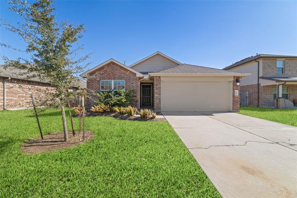 RARE! Modern, stylish home w/Solar Panels in Rodeo Palms, ready for immediate move-in! Featuring tile flooring throughout, the elegant kitchen boasts granite countertops, stainless steel appliances (fridge stays), custom stone accents, and ample counter space + pantry, open to living and dining. Large covered back patio, ideal for entertaining. The split plan features two bedrooms and guest bath towards the front, and primary bedroom at the back with massive walk-in closet + custom built-in storage, bath w/dual sinks and oversized framed glass walk-in shower. Large laundry room in home (W/D stay), fully fenced backyard + attached 2-car garage. Equipped with 35k+ in solar panels designed to produce surplus electricity—plus EV charger ready—this home has minimal to no electricity costs, thanks to utility buy-back program. Rodeo Palms is near the Texas Medical Center and Texans facility and is known for its wow-packed amenities like Parks, pool, trails and stocked ponds! New water hea