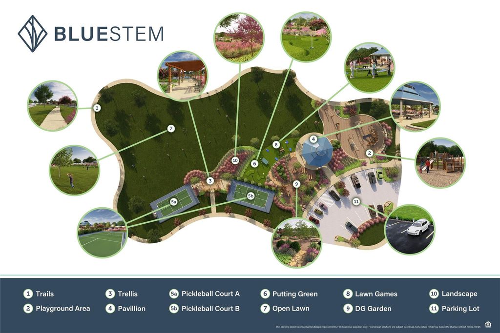 The Juniper offers a perfect balance of style and functionality with three bedrooms and two bathrooms in an open, inviting layout. The island kitchen seamlessly connects to the family and dining rooms, perfect for everyday living and entertaining. The owner’s suite is a true retreat, featuring a spacious walk-in closet and the option to upgrade to a luxury bath and shower. Step outside and personalize your outdoor space with two covered patio options, perfect for relaxing or entertaining. The Juniper is designed for comfort, convenience and modern living. Bluestem is more than a place to live, it’s a community designed for connection and quality of life. Planned amenities arriving in April 2026 include a playground, pocket parks, pickleball and multi-purpose courts, a covered pavilion, an artificial turf field and walking trails. A central plaza with shaded picnic tables will give neighbors a place to gather and enjoy the outdoors.