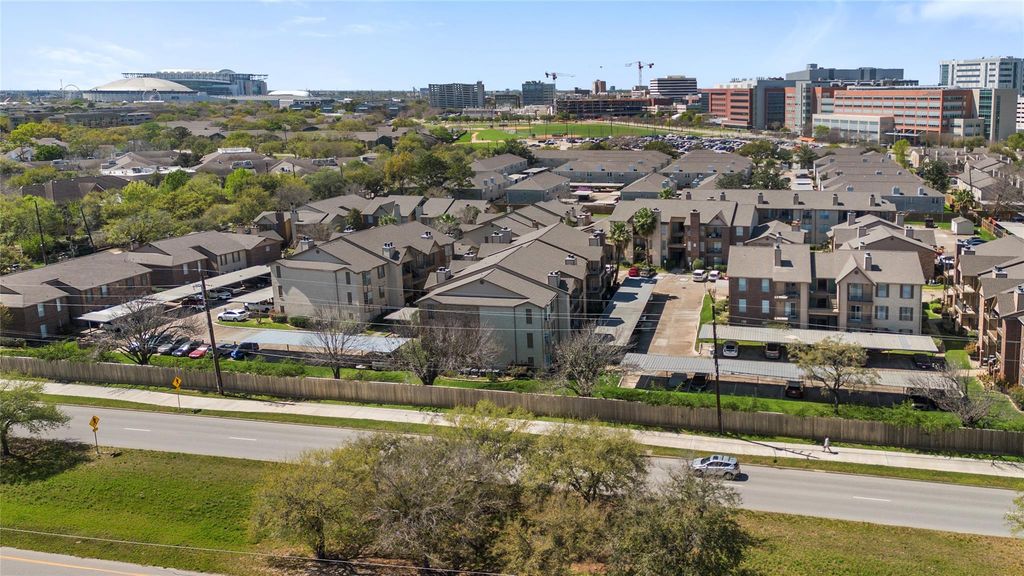 Move-in ready just minutes from the Texas Medical Center, NRG Stadium, and Rice University, this first-floor 2-bedroom, 1-bath condo offers exceptional convenience and comfortable living. Perfect for Medical Center professionals, students, or investors seeking a high-demand, safe location. The spacious layout features a large primary bedroom with an oversized walk-in closet and a beautifully updated full bath. Enjoy the cozy wood-burning fireplace and relax on the private covered patio with additional storage. This home also includes in-unit laundry, a designated covered carport, and ample guest parking. The well-maintained community features a sparkling pool and attractive landscaped grounds. Quick access to the 610 Loop and major freeways. Just minutes from Baylor College of Medicine, UT Dental School, Downtown Houston, UT shuttle within walking distance. Seller may consider selling furnished. Schedule your showing today!