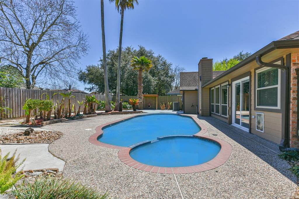 Come and see this adorable home nestled in the Southdown Pearland neighborhood. Located with direct access to 288, just off McHard Rd., approximately 12 minutes from the medical center, Houston Zoo, or Hermann Park. This home boasts 4 bedrooms and two full baths. Entering the family room, note the wall of windows that gives the home a bright airy feel and looks out to the oversized backyard complete with pool, hot tub, great landscaping and storage shed. Other amenities include the gas log fireplace, vaulted ceilings, separate dining area, granite in kitchen and baths and an open / split floor plan. The beautiful chandeliers stay. Zoned to Pearland ISD. Low tax rate. Never flooded, per seller.