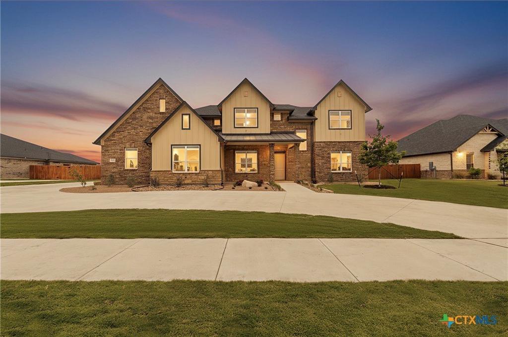 Experience award-winning luxury in this exceptional new construction home in The Settlement on Stagecoach. Showcasing best craftsmanship and recognized for its best interior design, this 4-bedroom, 4.5-bathroom home offers 3,740 sq ft on a half-acre lot. Inside features include arched entryways, double crown molding, custom baseboards, designer lighting, and porcelain and marble floors throughout. The gourmet kitchen boasts a 9-foot island, custom cabinetry, designer hardware, and a full scullery with gas cooking, multiple ovens, sinks, and dishwashers, plus a custom brick backsplash. The main-level primary suite offers a spa-like bath and infrared sauna. Additional spaces include an office, game room, and media room. Enjoy a 700 sq ft covered patio with outdoor kitchen and a spacious backyard with mature trees, irrigation, and privacy fencing. Complete with custom closets, a circular drive, and 3-car garage, this home blends luxury, comfort, and standout design.