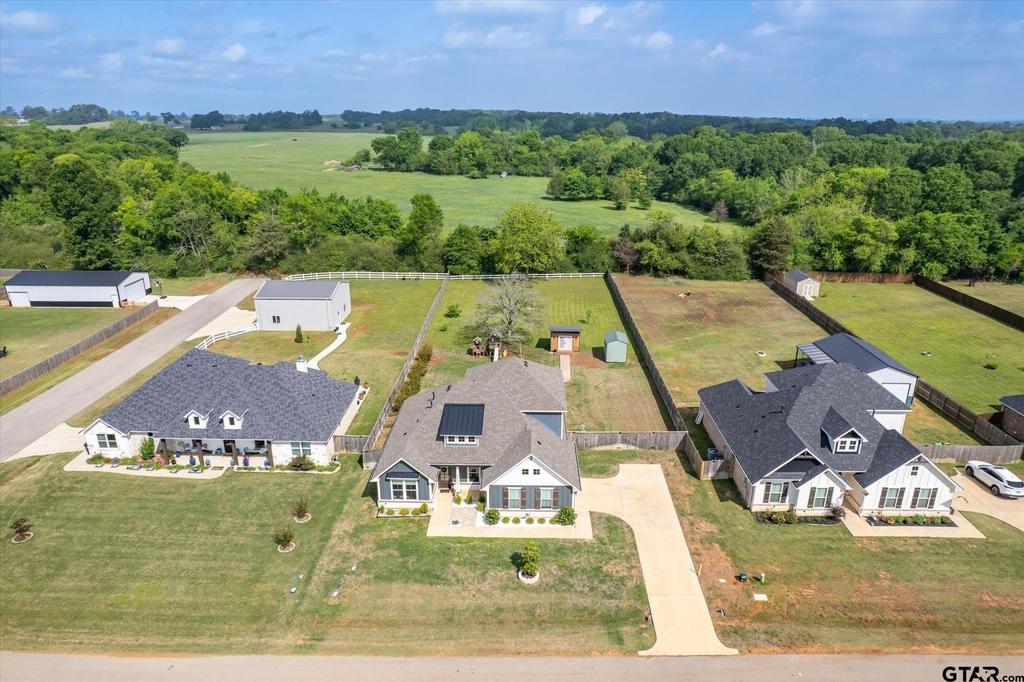 Welcome home to this spacious and thoughtfully designed 6-bedroom, 3-bath home on a spacious lot, conveniently located near Oak Hurst Golf Course, in Bullard ISD. A welcoming entryway sets the tone as you step inside to a well-appointed split floor plan, offering both comfort and flexibility for modern living. The first level features an open floor plan with a generous living area, a formal dining space, and an eat-in kitchen complete with a pantry. The primary suite is conveniently located downstairs, along with three additional bedrooms and an additional full bath, providing flexible options for unique homeowner needs that might include an office, playroom, or bonus room. Upstairs, you'll find an open loft space, flanked by two more bedrooms and a full bath, ideal for guests, a game room setup, or multigenerational living. Custom details, abundant storage, and transitional design with modern touches are found throughout the home. Step outside to enjoy the huge backyard, offering endless possibilities