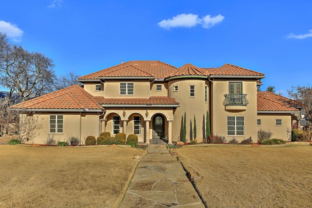This stunning, updated custom Mediterranean home is located in the prestigious, gated and guarded golf course community of Mira Vista. Walls of windows flood the home with natural light while showcasing picturesque views of the pool and outdoor living areas—perfect for effortless entertaining or quiet relaxation. The gourmet kitchen impresses with a generous island, custom cabinetry, and professional-grade appliances. The luxurious primary suite feels like a private spa, featuring a jetted tub, separate shower, dual vanities, heated floors, and custom closets. A guest suite with ensuite bath and pool access is conveniently located on the main level. Upstairs, two additional ensuite bedrooms and a game room provide ideal space for guests or family. Step outside to a resort-style backyard complete with a beach-entry pool, slide, and grotto. A split three-car garage provides exceptional storage.