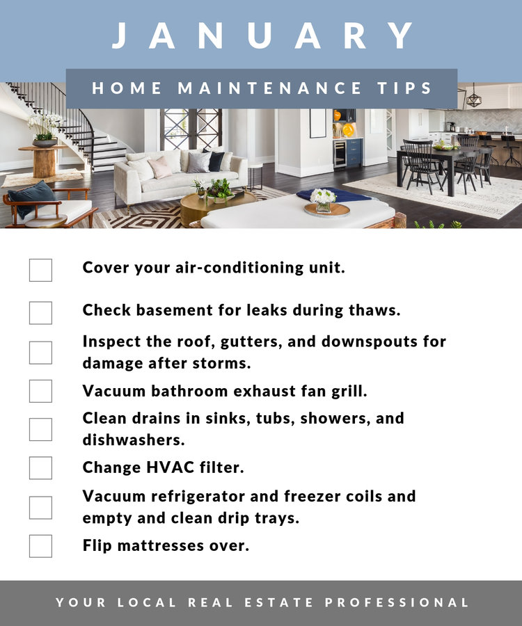Pride in homeownership can be seen in many different ways. One of the most important areas is keeping up with the regular home maintenance monthly. Here is your checklist for January.