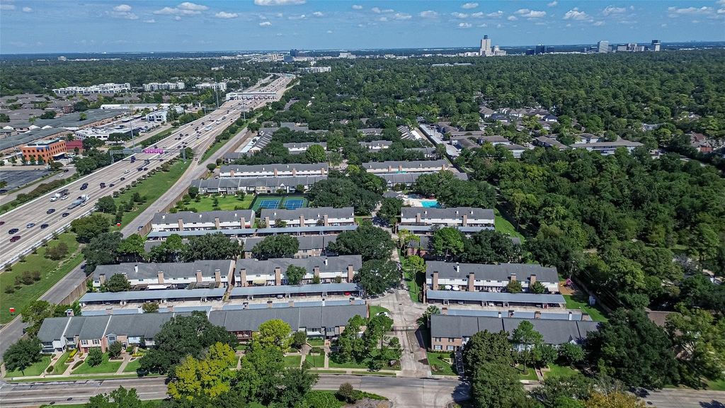 Amazing lock & leave home recently updated/upgraded inside Beltway 8 with courtyard location. Kitchen with quartz counters, stainless appliances & white cabinets and Baths upgraded with quartz counters, new fixtures, under mount sinks, marble and/or subway tile and penny tile & the floors shine with wood look tile and carpeting flooring. There are plantation shutters, recent windows or wood blinds and ceilings fans & a floor to ceiling wood burning fireplace. Outside there is a private back patio area for light gardeing or grilling or relaxing at the end of the day. Your 2 vehicles park covered beyond and locking outside storage is close behind. Located minutes from City Center, this property offers unbeatable access to major highways, shopping centers and a wide variety of dining and entertainment options. Outdoor lovers will appreciate the community pool, tennis courts and proximity to parks and walking trails. This home offers the perfect lifestyle balance in a beloved community.