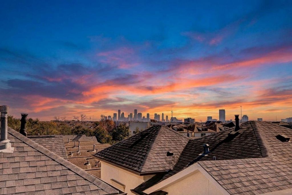 Soaring above the city, this contemporary residence delivers breathtaking, unobstructed downtown views from an expansive rooftop terrace—an entertainer’s dream and a rare find for urban buyers. Striking curb appeal sets the tone with a modern front elevation accented by custom wood details. The first floor offers a private bedroom with en-suite, ideal for guests or home office. On the 2nd level, an oversized open-concept living and dining area creates an impressive setting for hosting, complemented by a large balcony perfect for morning coffee or evening wind-downs. The chef-inspired kitchen stands out with sleek black and brass finishes, generous island with seating, gas range, abundant storage, and refrigerator included. The third floor is anchored by a serene primary retreat featuring a private balcony, walk-in closet, and spa-like bath with dual vanities, soaking tub, and walk-in shower. A secondary en-suite bedroom completes the level. Extensive architectural upgrades througho