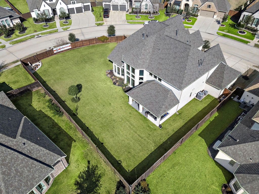 2802 Merlin Way is listed for sale at $ 908,000. The Single-Family property has 5 bedrooms, 4 Full Bathrooms, 1 Half Bathroom, 4190 square feet and was built in 2020. The lot size is 15413 Square feet. ##BR##Luxury Living in the Gated Section of Cane Island! Stunning Corner Lot! This beautiful 5 BR, 4.5-bath home with a rare 4-car garage sits on a 15,000+ sq. ft. lot. A grand two-story entry with a curved staircase welcomes you inside. The open-concept living area features soaring ceilings, a stone fireplace, floating wood shelves, custom drapes, and an angled wall of windows that fills the home with natural light. The layout offers two bedrooms on the first floor, ideal for guests or multi-generational living. The primary suite includes a curved wall of windows, stained wainscoting, and hardwood floors. Upstairs features a spacious game room, theater/media room, and Hollywood bath. Abundant storage and closet space make this home as functional as it is beautiful.