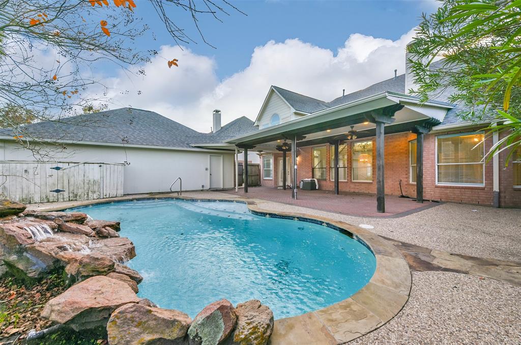 Beautiful 2 story with a pool in the highly desirable Villages of Edgewater. Unique and functional design features elegant wood floors in living areas and kitchen, formal living with French doors that could also be used as an office, formal dining, spacious family room with high ceiling, walk-in pantry and large utility room. Primary bedroom downstairs with 2 large walk-in closets. Upstairs features game room, desk niche, 3 bedrooms and 2 full baths. Backyard oasis with a pool, you will love it!!