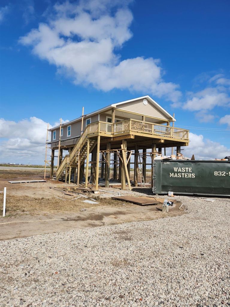 You will love the home, location, and price!! New construction of a 3/2 home in Surfside in the beachside subdivision Palm Point. There is easy access to the beach over the walk-over at the end of Gulfway Ct. This home has a large front deck that is half covered, and half uncovered. It has a popular floor plan that opens off the deck into an open living room to the dining area and kitchen with a vaulted ceiling. There is a hall to the rear with a pantry and to the left is a primary bedroom with a private bathroom. Further down the hall to the right is a full bathroom access to the utility room. There are two bedrooms to the rear. The bedroom adjacent to the bathroom has a door to the back deck. This is a popular floorplan seen all over Surfside Beach. Some are primary residences and others are rentals. Call for information