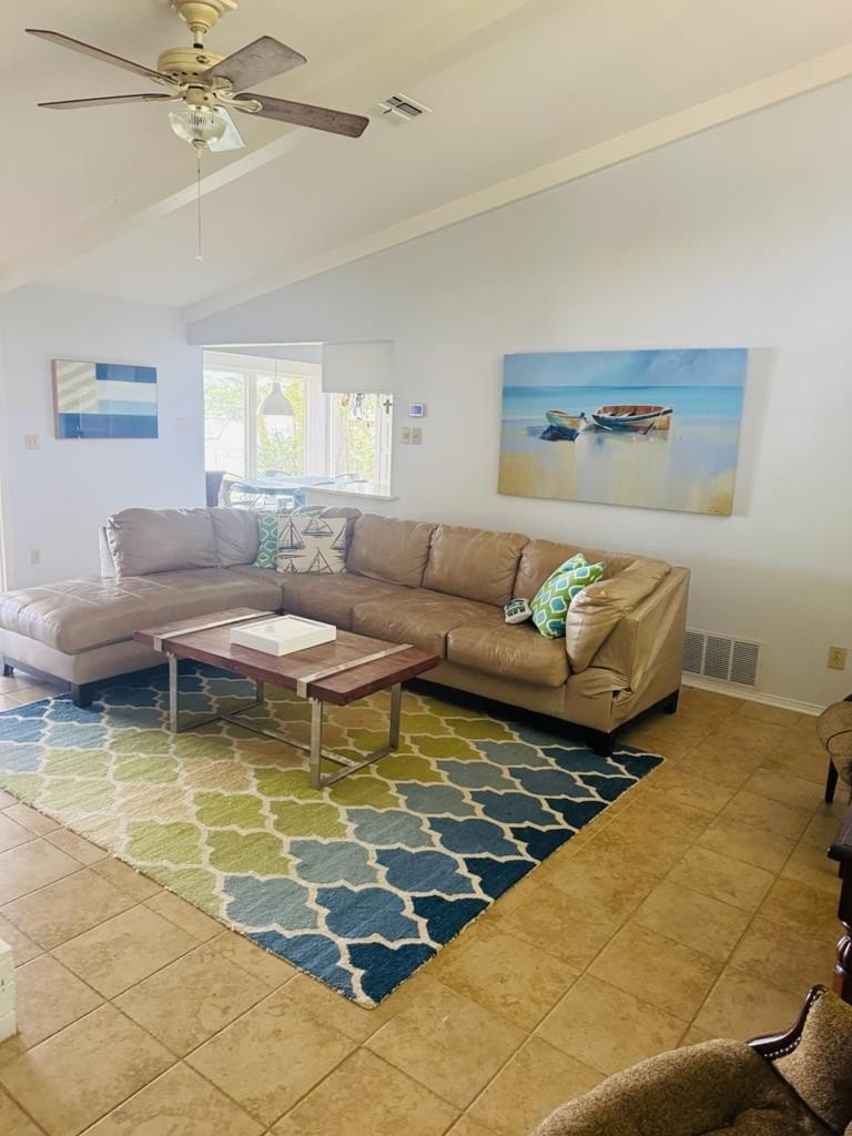 Spacious waterfront home offering two living areas, three bedrooms, and three full baths, plus a two-car garage. The open-concept design features high vaulted ceilings and a brick fireplace creating a warm and expansive feel. A versatile flex room provides the option for a fourth sleeping area, perfect for accommodating guests. Situated on one and a half lots with 158 ft of shoreline, the property showcases a beautiful setting with mature trees and a sweeping views across a large bay. Enjoy outdoor living on the covered porch or separate deck, along with a sandy swimming area perfect for lakeside fun. A private boathouse with sundeck completes this exceptional waterfront retreat.