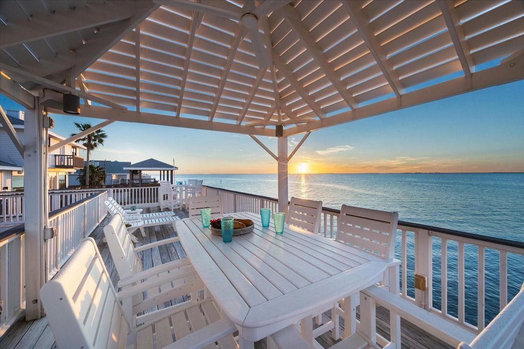 Exceptional bayfront retreat in sought-after Sea Isle with unobstructed water views, breathtaking sunsets, a pool and private covered boat dock. Designed for effortless coastal living, this home offers a bright open-concept layout with expansive windows and designer touches across three levels. The living room and gourmet kitchen showcase panoramic views anchored by a gas fireplace and built-ins. A serene primary suite offers a retreat with spa-like bath and private balcony. Secondary bedrooms offer direct balcony access and stunning bay views. Outdoor living shines with multiple decks overlooking the bay, along with professional landscaping, a private pool and spa that create a true waterfront escape with seamless indoor-outdoor flow. A ground-level kitchen and outdoor grill gathering area enhance the home’s entertaining potential. The in-home elevator provides convenient access to all levels. A custom-designed home that truly captures the essence of luxury coastal living.