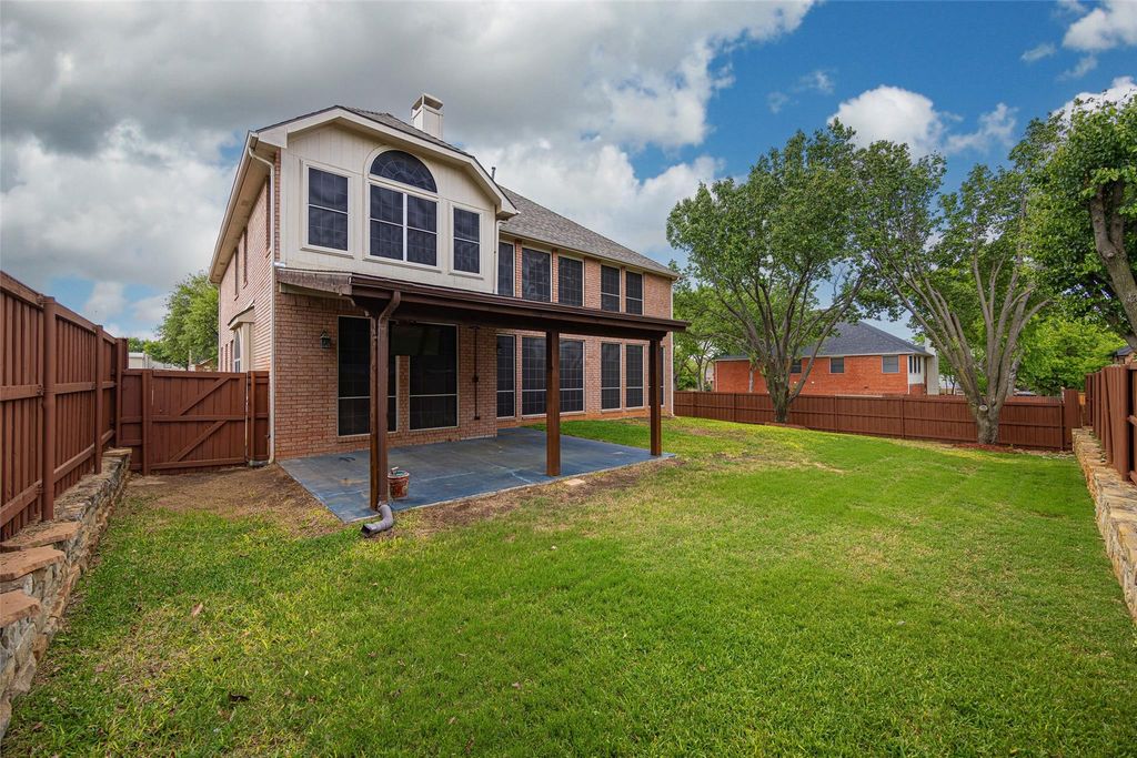 Highland Village show stopper on an oversized corner lot in a private cul de sac! Light and bright with enormous windows that flood every space with natural light. Wood-like tile throughout the first floor common areas is perfect for pets and not having to worry about scratches or dents in your wood floors. Upgraded carpet and pad in all the bedrooms and upstairs. Incredible space throughout the home means never feeling like you're on top of each other. Very large downstairs primary suite with huge windows and a newly remodeled spa-worthy primary bath! Seamless glass shower enclosure, quartz counters, designer black finishes and mirrors, and a soaking tub after long days! Primary closet has a ton of hanging space and room to move around. Formal living with two-story windows and formal dining with passage into the well appointed chef's kitchen. Gas cooktop, newly painted 42in cabinets with pulls, center island, stainless steel appliances, tons of counter prep space, and an eat-in breakfast nook. Spacious first floor living room with gas fireplace and two story windows letting in great natural light. Downstairs powder room convenient to all living spaces. Upstairs we find three more large bedrooms with ceiling fans, a full bath, and a great game room for fun or movie area. Oversized corner lot offers a phenomenal backyard entertaining area large enough to play catch or throw the tennis ball for you pups. Covered patio on the back door gives great space for entertaining and backyard BBQs. Feeding to exemplary primary and intermediate schools and Marcus High School. Conveniently located to shopping, schools, restaurants, and entertainment. Photos don't do it justice. Tour today!