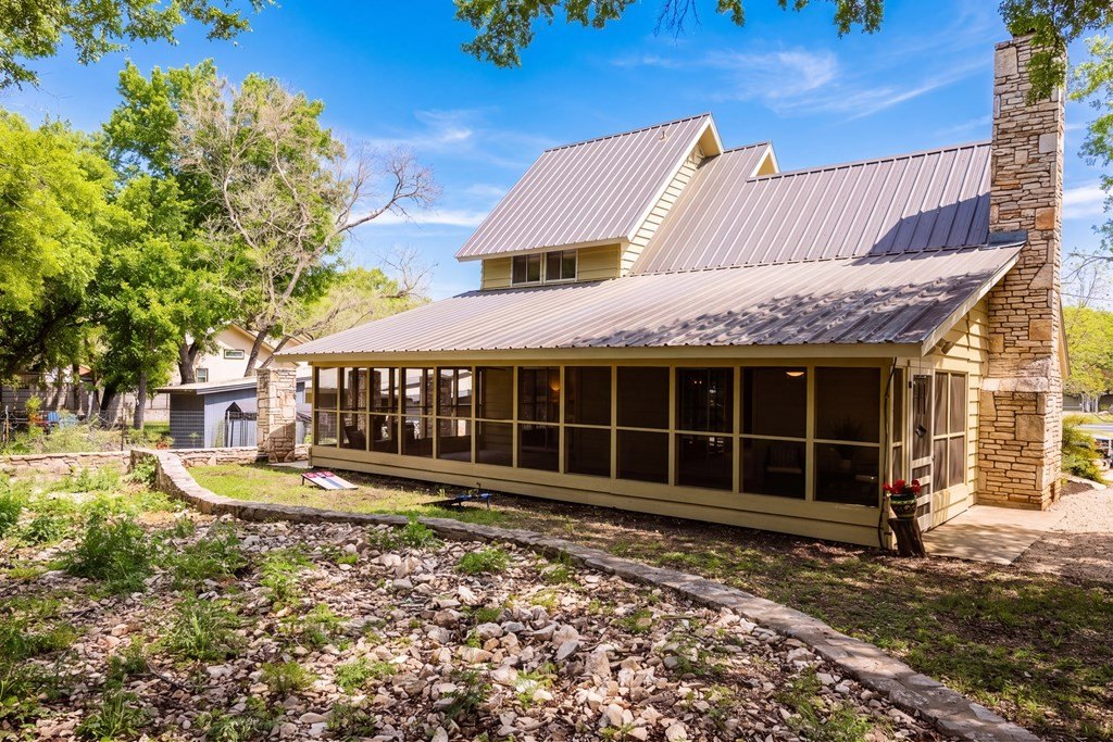NO FLOOD DAMAGE. Ideal for a weekend retreat, investment property, or full time Hill Country living, this charming Guadalupe River area home offers excellent short term rental potential. Tucked beneath a canopy of mature trees on approximately .81 acre in the Mary Meade community, the property includes access to a private HOA Guadalupe River park just a short walk away, perfect for swimming, fishing, kayaking, and relaxing along the water. The 2 bedroom, 2 bath home features soaring ceilings in the living room anchored by a dramatic floor to ceiling rock fireplace, with an open dining and kitchen area designed for comfortable everyday living. The main level primary suite includes a private bath, while the upstairs bedroom offers generous space for multiple beds and a sitting area with windows that create a treehouse like feel. Outdoor living is equally inviting with a large front deck ideal for morning coffee or evening cocktails and an oversized screened porch accessible from the living room overlooking the peaceful hillside setting. Recent improvements include fresh interior and exterior paint, luxury vinyl plank flooring, a new dishwasher, and a newly installed circular driveway. A separate workshop provides excellent storage or hobby space.