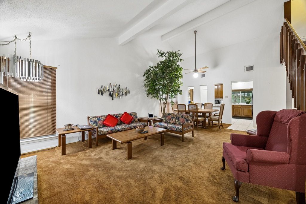 Welcome to 9815 Walnut Glen, nestled in the desirable Harvest Bend community! Perfectly positioned on a spacious corner lot within a quiet cul-de-sac, this 4-bedroom, 2 full and 1 half bath home offers both privacy and potential. Step inside to discover a thoughtfully designed floorplan featuring soaring cathedral ceilings that create an open, airy feel throughout the main living space. The first-floor primary suite adds convenience and comfort, while the generous layout provides plenty of room for everyday living and entertaining. While the home retains some of its original character, it presents an incredible opportunity to personalize and add your own modern touches—all at an exceptional value. Recent upgrades include a water filtration system and solar panels, delivering enhanced efficiency and long-term energy savings. With its prime location, functional layout, and great potential, this home is ready to be transformed into your dream space!