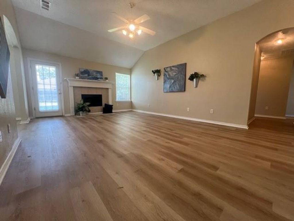 Wonderful 3-bedroom, 2-bath home in Burleson. This home features a nicely sized kitchen with an electric range and built-in microwave, perfect for everyday living. The living area offers a cozy fireplace, creating a warm and inviting space. The primary bedroom includes a walk-in closet and an en-suite bathroom with dual sinks, a garden tub, and a separate shower. Enjoy the spacious backyard with a wood fence—ideal for relaxing or entertaining.