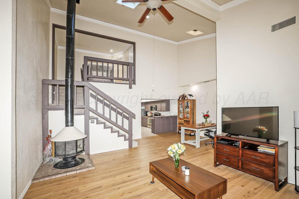 End-Unit Townhome Living at Its Finest in Paramount! Nestled on a quiet cul-de-sac, this beautifully updated 3 Bed, 2 Bath end-unit townhome delivers the perfect low-maintenance lifestyle -- no garage to clutter, no large yard to maintain, just more time for what matters most. The main level is designed for easy, single-floor living with two spacious bedrooms -- including a private third bedroom with French doors and an ensuite 3/4 bath, plus an isolated second bedroom ideal for guests or a home office. The great room impresses with soaring sloped ceilings, skylights, and a cozy wood-burning stove, making it a warm and inviting gathering space. Luxury vinyl flooring flows seamlessly into the dining area, and the kitchen shines with stainless steel appliances and abundant cabinet storag Upstairs, your private primary retreat awaits -- a quiet upper-level suite with a full bath, completely separated from the other bedrooms for maximum privacy. A versatile loft landing completes the upper level, perfect as a home office or reading nook. Recent updates throughout include flooring, interior paint, kitchen appliances, HVAC, water heater, and bathrooms -- meaning you can move right in with zero projects on your list. The low-maintenance outdoor space means weekends are yours to enjoy, not spend on yard work. Townhome convenience, end-unit privacy, cul-de-sac serenity -- all at a great price!
