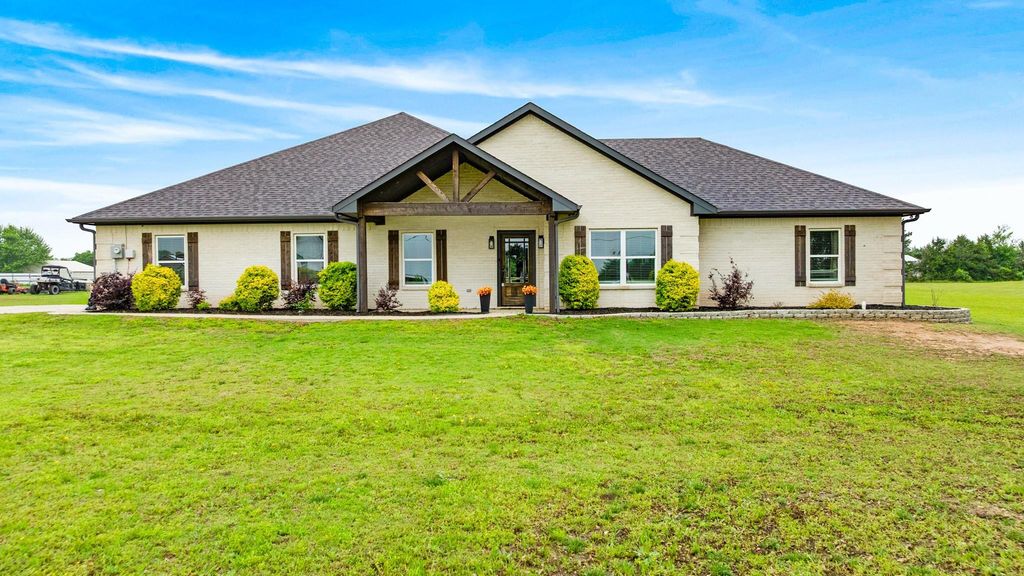 Step into this magazine-worthy home offering over 2,500 square feet of thoughtfully designed living space, set on nearly 2 beautiful acres. This 4-bedroom, 2-bath property is perfectly positioned beside the community pond, providing both scenic views and easy access. Inside, you’ll find features that truly set this home apart—from the impressive 8x8 walk-in pantry to the oversized utility room with convenient access from both the garage and the primary closet. The spacious primary suite is a retreat of its own, complete with dual vanities and a luxurious oversized shower featuring dual shower heads and a built-in seating area. The heart of the home is the stunning kitchen, showcasing a large island ideal for gathering and entertaining, all beneath vaulted ceilings that enhance the open, airy feel. Opposite this stunning kitchen is the living room with the beautiful fireplace equipped with gas logs for views everywhere you turn.
