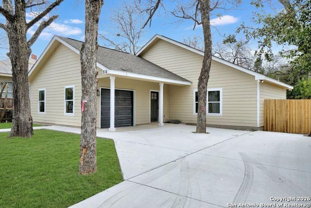 Brand new construction with 2-10 Home Warranty!! Many Mature Pecan trees and oversized backyard. Open concept floor plan with primary bedroom split from other 3 secondary bathrooms. Exterior entry from back patio to secondary bathroom for convenience and logical floor plan. No carpet. Very quiet neighborhood. Good neighbors. Well sized kitchen and open concept living/dining area. Walking distance to Riverside Golf Course and many things to do in SouthTown. Secondary bedrooms are larger than most builders. Landscaping will be completed once home is under contract and sold due to new homeowners present to maintain.