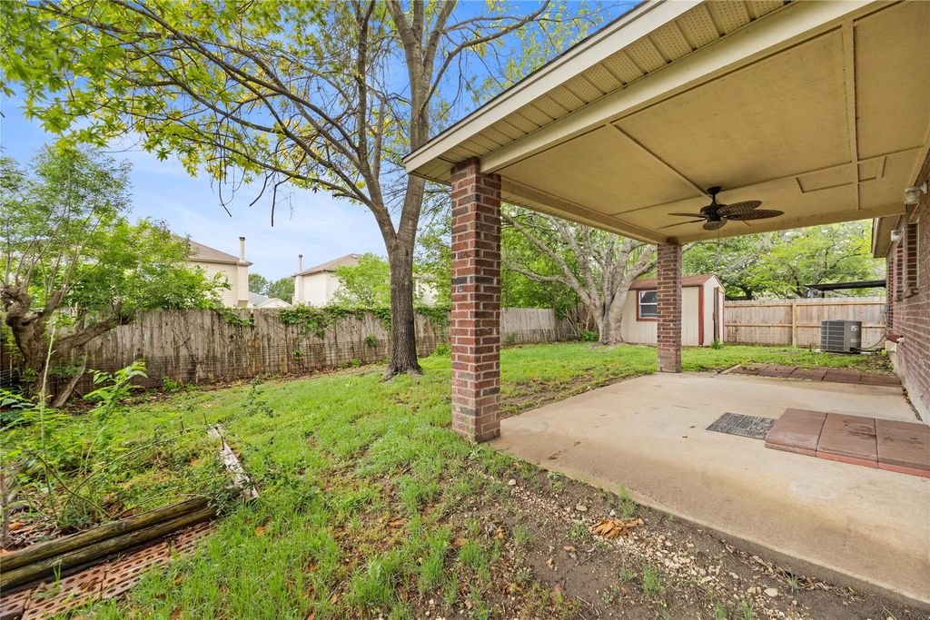 Charming 4-bedroom, 2-bath single-story brick home located in the established Stone Point subdivision of New Braunfels. This well-maintained residence features an open-concept layout with cathedral ceilings, spacious living and dining areas, and a kitchen offering a large island, ample cabinetry, and excellent counter space. The private primary suite includes an oversized walk-in Corian shower with upgraded accessibility features. Recent updates include a new roof ('22), heat pump HVAC system ('21), and new vinyl plank flooring throughout, plus foundation repair with transferable warranty for added peace of mind. Additional highlights include a covered back patio, sprinkler system, mature trees, and storage shed. Conveniently located near Comal ISD schools, Fischer Park, Landa Park, Schlitterbahn, and downtown New Braunfels dining, shopping, and the Comal River. Easy access to I-35 and Hwy 46.