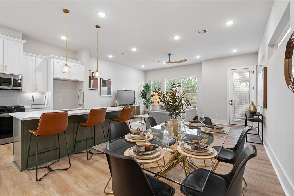 Introducing Pech Landing, a 31-home privately gated community by J Christopher Builders, renowned builder with over 55 years of experience known for quality craftsmanship and in-city development. This two-story offers first floor living, a private driveway, a 28-foot-wide shared drive for full-size vehicles, and a fenced backyard, a combination becoming harder to find in Spring Branch. The community will include future green space. Positioned in one of Houston’s most central neighborhoods, Pech Landing offers access to the Heights, CityCentre, Galleria, and Downtown, along with proximity to HEB, Costco, and Spring Silos redevelopment. A designated dining area adds separation to the main living space, while quartz countertops, soft close cabinetry, under mount lighting, and LVP flooring complete the interior. The primary suite features tray ceilings, his and her closets, double vanity, freestanding tub, and a glass shower, while the secondary bath includes dual sinks. Welcome home!