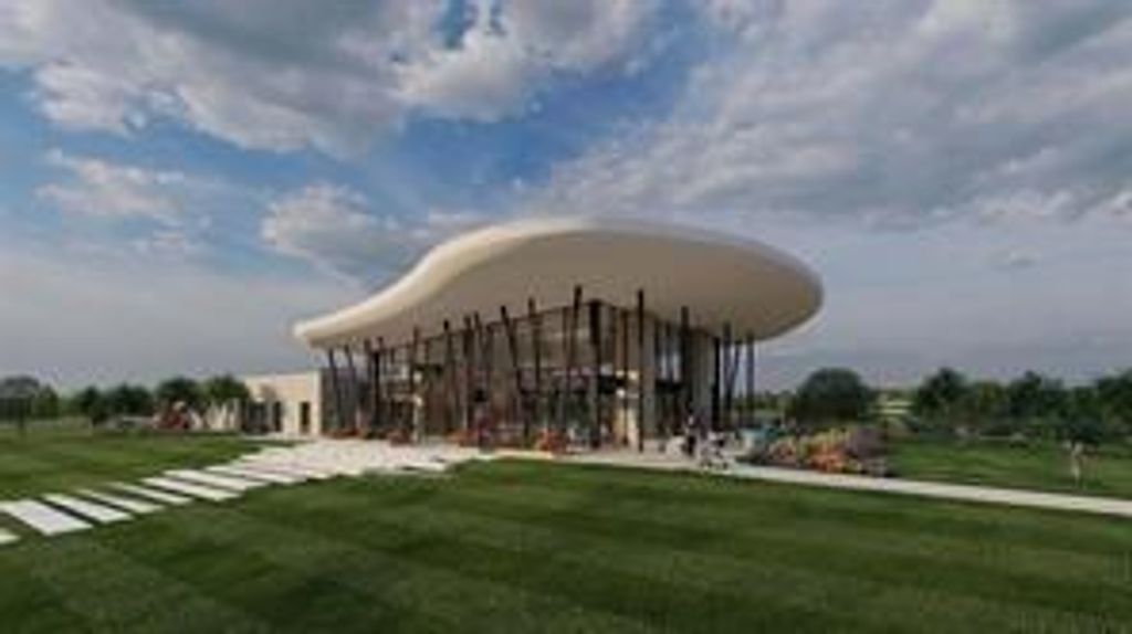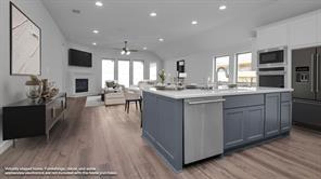 Home office with French doors set at entry with 12-foot ceiling. Extended entry leads to open kitchen, dining area and family room. Kitchen features corner walk-in pantry, generous counter space and island with built-in seating space. Dining area flows into family room with wall of windows. Primary suite includes double-door entry to primary bath with dual vanities, garden tub, separate glass-enclosed shower and two large walk-in closets. A guest suite with private bath adds to this spacious one-story home. Covered backyard patio. Mud room off two-car garage.