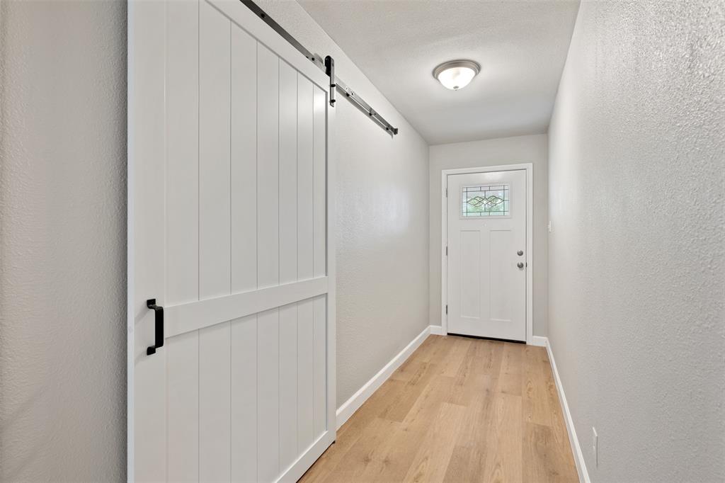 Step into style and character at 1301 Dove Haven, a beautifully remodeled 3-bedroom, 2-bath home blending modern updates with a fun retro vibe. Originally built in 1980, this move-in ready property has been thoughtfully refreshed inside & out with designer touches throughout. A barn door accents the entrance hallway with a closet tucked behind. Fresh interior paint creates a bright and inviting feel, while light wood-look laminate flooring flows through the main living areas. The three bedrooms & upstairs bonus room feature brand-new Berber-style carpet for added comfort. The versatile upstairs space, accessed by a striking spiral staircase, can easily serve as a media room, game room, home office, or home gym. The living room offers warmth & personality with a wood-burning fireplace & eye-catching architectural details. In the kitchen, stylish updates include painted white cabinetry, sage grey subway tile backsplash, & white granite countertops, creating a space that feels both fresh & timeless. Both bathrooms have been remodeled with updated tile flooring, new vanity spaces, framed mirrors & new toilets. The secondary bath features a new tub with tiled surround, while the primary bath showcases a new shower door, a new vanity, sink, and mirror for a polished finish. Outside, curb appeal shines with a renovated front and rear porch spaces featuring covered roofs, grooved wood ceilings, and cedar beams. The fenced backyard is ready for relaxing or entertaining with a charming gazebo & landscaped yard. A 2-car attached garage completes the package with additional parking available in the driveway. This one of a kind home offers personality, flexibility, and modern comfort in a desirable Pflugerville location. You are minutes from the charming downtown area with coffee shops, breweries, and shopping areas. Traveling on major thoroughfares such as Toll 45 & Toll 130 are just minutes away. Best of all, 1301 Dove Haven is not in an HOA community.