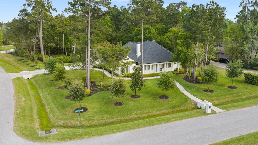 This exquisite home on a one-acre corner lot in Benders Landing Estates offers nearly 4000 sq. ft. of refined living space. The 1.5-story layout features three en-suite bedrooms on the main floor, plus a gameroom and en-suite bedroom upstairs. Every detail reflects pride of ownership and meticulous upgrades. The exterior boasts painted brick, custom wood shutters, a new roof with screened gutters, + a pergola with a summer kitchen. The screened pool features a heater, chiller, water features, and lighting. A sunroom with French doors, and custom gas fireplace connects seamlessly to the pool deck. Lush landscaping, moonlighting, and a whole-house generator ensure privacy and security. Inside, enjoy Italian wood-look tile, Pella windows, exotic quartzite countertops, custom fireplaces and modernized bathrooms. The kitchen features premium finishes, while upgraded HVAC systems and two tankless water heaters provide comfort. This remarkable residence is a masterpiece of luxury and style!