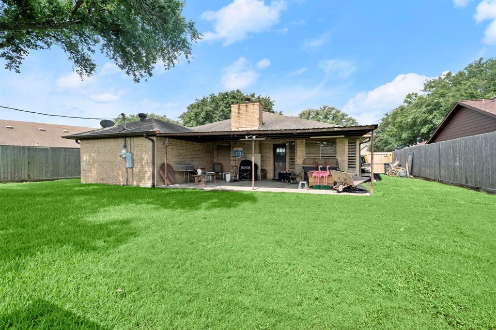 RECENTLY REDUCED and BACK ON THE MARKET! BRAND NEW ROOF, Completed 8/28/2024. Lovely home in the heart of Texas City. This 3 bed 2 full bath in Pilgrims Landing has a huge back yard and freshly redone front porch patio with paint! Flooring has been redone in the home and the kitchen is a welcomed treat for any cook. Double ovens and gas range in the kitchen along with tons of cabinet space and utility room in the house! French drains in the yard for excellent drainage. Primary bedroom has multiple closets and great lighting. Zoned for Texas City Schools. Elevation Certificate available.