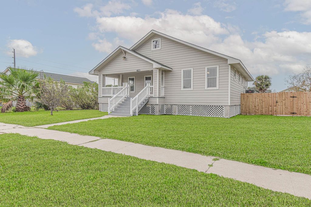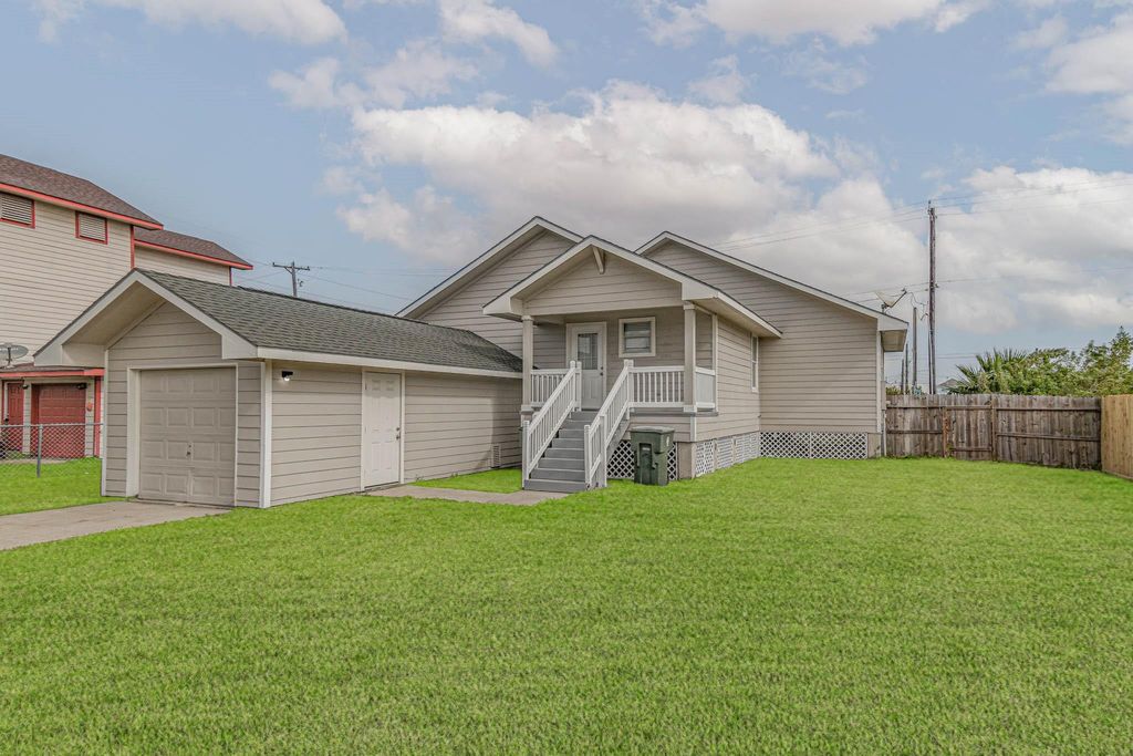 Beautiful and newly renovated 3/2 in Galveston! Updated flooring throughout, fresh paint inside and out, large open concept living/kitchen with white cabinets and breakfast bar overlooking the family room. Huge yard with driveway to the rear and access to the detached garage with lots of storage space. Nice & relaxing front & back porches with fans and a view of the cruise ships from your front porch! Great location! Close to parks, beaches & the Strand!