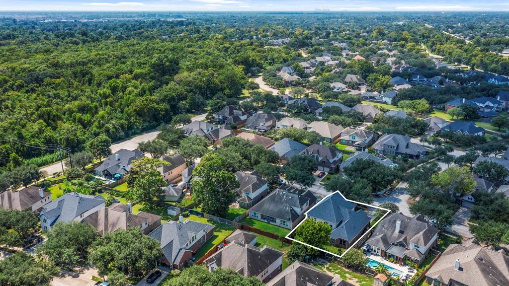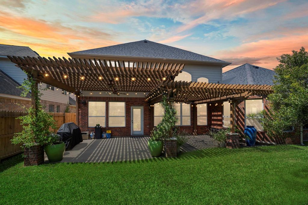 Welcome home to this beautifully updated 4-bedroom, 3.5-bath retreat offering style and comfort at every turn. The $27K kitchen renovation is a true showpiece with pristine Misterio quartz countertops, classic subway tile backsplash, painted cabinetry, designer light fixtures, a spacious island, and an upgraded bar area. A 5-burner cooktop, large farmhouse-style sink, and new oven (2023) make this space both functional and luxurious. The newly renovated spa-like primary bath features dual vanities, soaking tub, walk-in shower, and updated finishes that create a serene escape. Thoughtful updates include roof (2022), AC (2023), water heater (2024), carpet (2022), and exterior paint (2025). Outdoors, the extended pergola with ceiling fan and café lights provides the perfect backdrop for relaxing or entertaining, surrounded by lush mature trees. Ideally located, this home blends timeless upgrades with a warm, welcoming setting. Zoned to Ridgepoint HS.