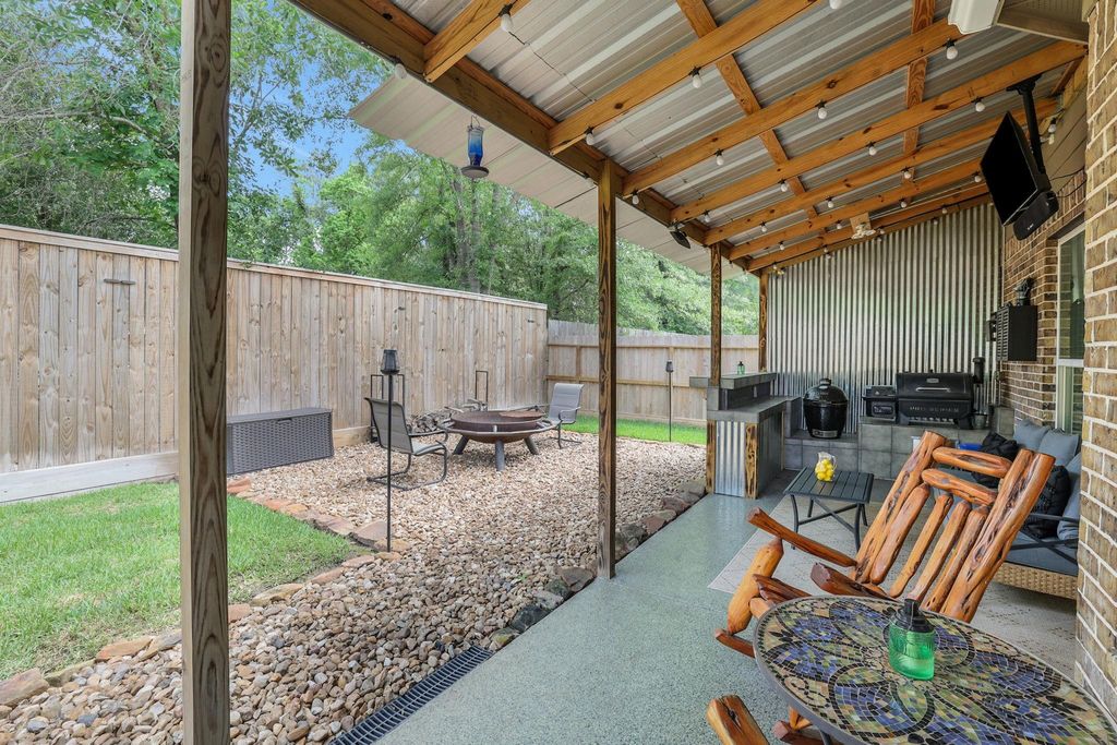 Stunning Legends-built Marquis floor plan on a desirable cul-de-sac in sought-after Oakhurst. Step into a welcoming foyer with formal dining and living to the left—perfect for a home office or flex space. The kitchen features granite countertops, a center island, tile backsplash, stainless steel appliances, and an oversized 30” gas range with oven. Breakfast area flows into the spacious family room with cozy fireplace. Enjoy your private backyard oasis with covered patio, outdoor kitchen, hot tub, and firepit—perfect for entertaining year-round. Upstairs offers an oversized owner’s retreat with sitting area and en suite bath featuring dual sinks, granite, soaking tub, separate shower, and huge walk-in closet with built-ins. Two additional bedrooms, secondary bath, and a versatile game room (or 4th bedroom/office) complete the second floor. Located in Oakhurst with golf course, pools, parks, and trails, and easy access to Hwy 59/69 and Grand Parkway 99.