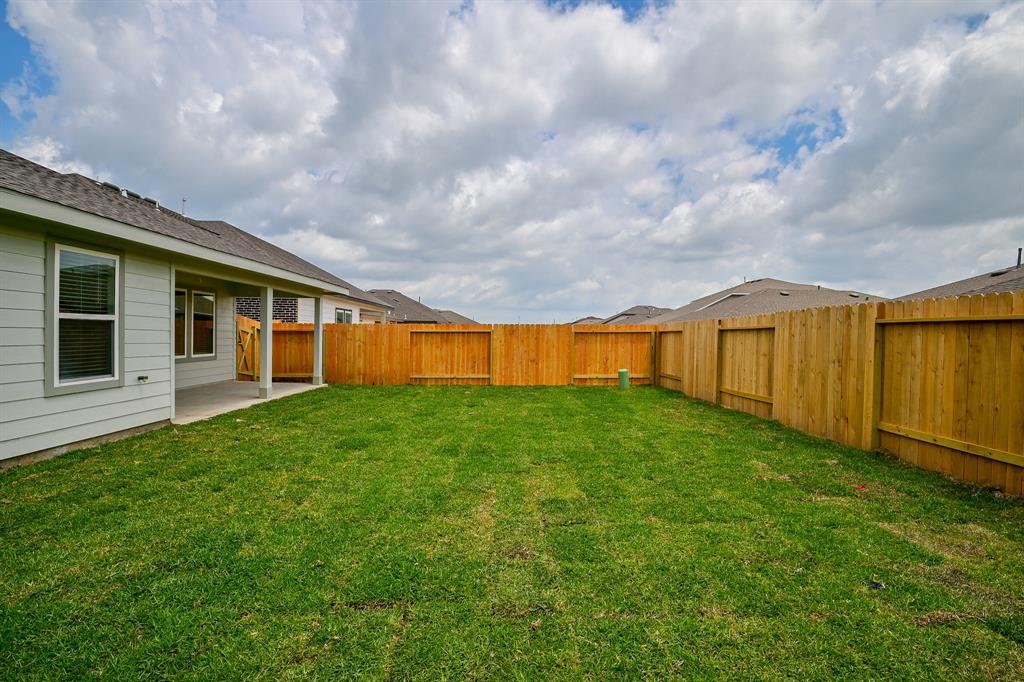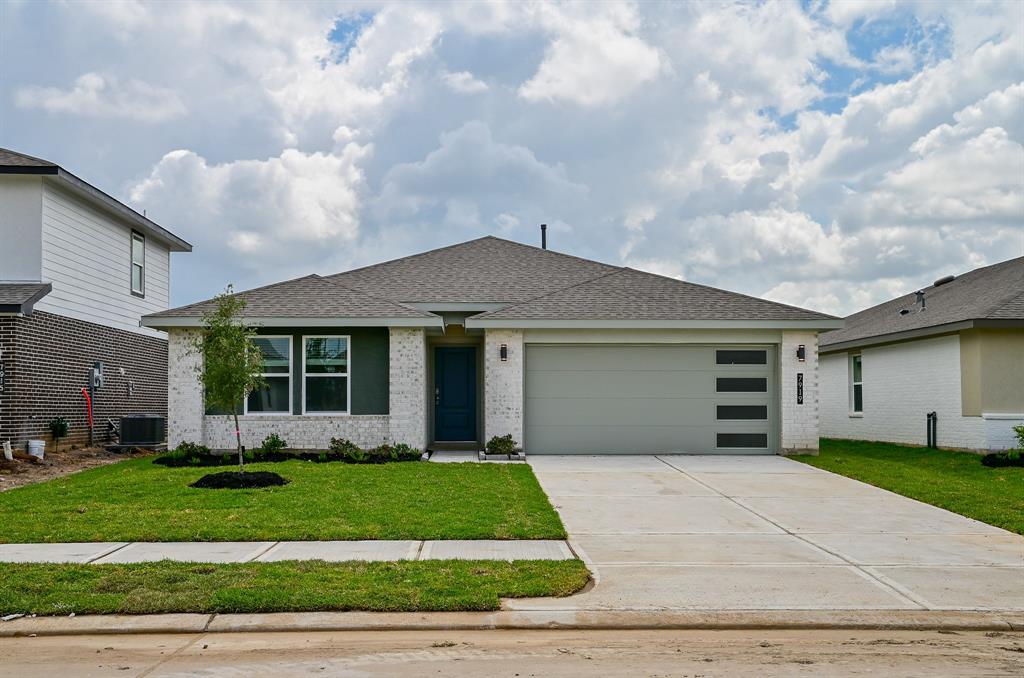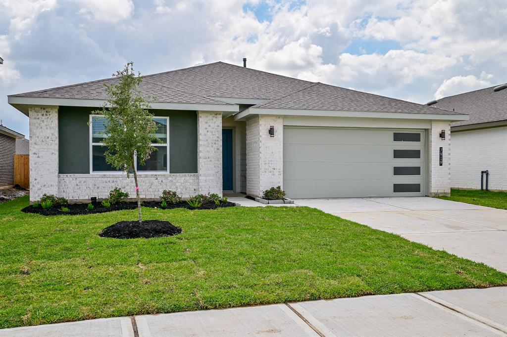 Never Lived In! This modern New Construction 1 story home offers 4 spacious beds and 2 baths, covered patio and 2-car garage! Beautiful Vinyl Floors throughout & Carpet in all Bedrooms! Kitchen is open to living and breakfast/dining room. Gourmet kitchen with gorgeous quartz counters, tall cabinets, eat-in & working station island, stainless steel appliances, spacious pantry & more! Primary suite with luxurious bath featuring dual sink vanity, over-sized shower, & large walk-in closet! Three secondary bedrooms & second full bathroom! Large back yard with Covered Patio & Full Sprinkler System. Standard Energy Features: HERS Energy Rated & Tank-less Gas Water Heater. Optional Smart Home Automation included to control thermostat, electronic deadbolt lock, doorbell with camera, and front porch lights from anywhere! Subdivision had No Flooding! Amenity Center w/Pool, Lap Pool, Water Slides, Pavilion, Playground, Soccer Fields & more! Schedule your appointment today!