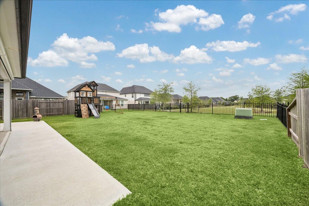 Welcome to this remarkable two-story home in Creekside at Highland Glen built in 2023. Featuring 4 bedrooms, 3.5 baths, and a 2-car garage, this home is the perfect floor plan. The primary bedroom downstairs includes an en suite bath with a soaking tub and separate shower; kitchen which opens to the family room offers upgraded stainless steel appliances, walk-in pantry and bar seating; downstairs home office was designed perfectly with built-ins. Upstairs you'll find 3 bedrooms, 2 full baths, gameroom, and a media room. Enjoy the extended patio with electric roll-down sun shades and a backyard that backs up to a walking trail. With over a hundred thousand dollars in upgrades, this home is truly special. Conveniently located near Pearland Parkway for easy access to shopping and the beltway.