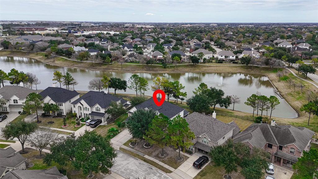 Stunning 2-story house on a lakefront lot in the Master Planned Community of Shadow Creek Ranch! Featuring 5 bedrooms, 3.5 baths, formal dining, formal living room, breakfast room, study, family room, game room, all enhanced by soaring ceilings, large windows, an elegant staircase, and beautifully appointed chandeliers. The kitchen opens to the family room and features an island, breakfast bar, abundant counter and cabinet space, and double ovens. The primary suite with a view of the lake, an en-suite bath with dual sinks, whirlpool tub, separate shower, and a walk-in closet. Outdoors, enjoy a spacious backyard with fully screened sunroom, outdoor grill and serene lake views! Your family can enjoy amenities such as walking trails, water park, playgrounds, swimming and more! Excellent location near shopping, dining, top-rated schools, and all major Highways! No carpet throughout, Fresh Paint, Recent ROOF. Schedule your private showing today!