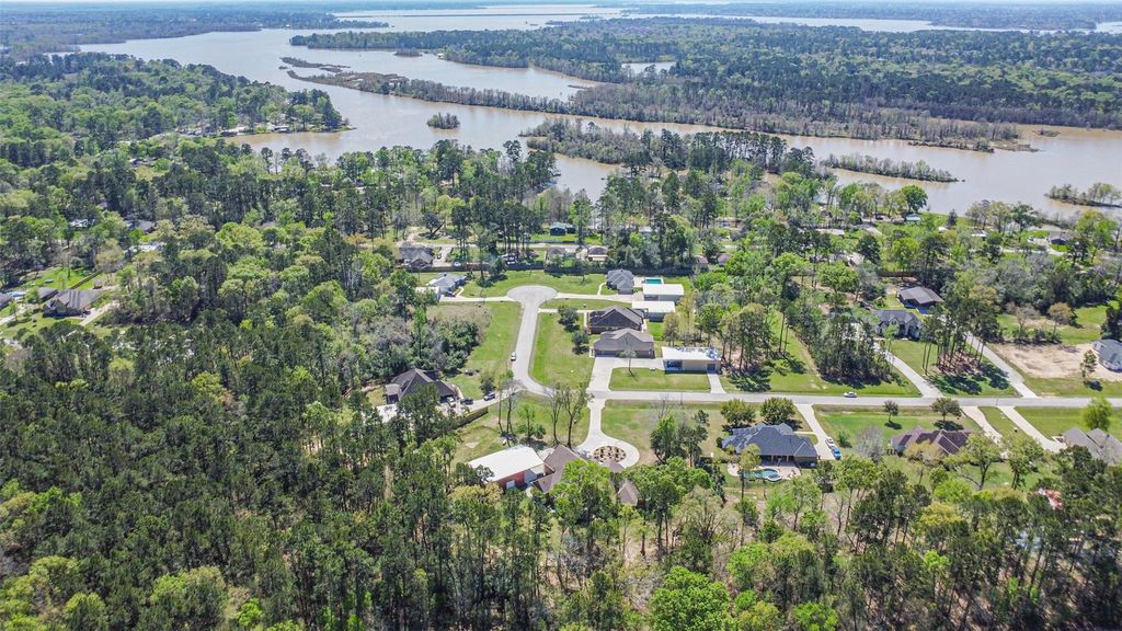 This quality, craftsman style, custom, luxury home is loaded w/detail and built for comfort on 2.46 acres w/city utilities. Located in The Commons of Lake Houston, a 3,400-acre lakeside community w/parks, pool, beaches, boat docks, trails & pavilion. Designed for entertaining w/covered front & rear patios, outdoor wood-burning fireplace & built-in BBQ grill. Features: engineered wood floors & travertine tile (No Carpet), custom metal double door, incredible ceiling architecture throughout, 7-inch baseboards, fireplace, crown molding, custom built ins, spray foam insulation, tankless water heater, oversized 3-car garage w/split A/C, & insulated 45x45 workshop w/45x30 carport. Gourmet kitchen w/ knotty alder cabinetry, granite, Wolf gas range, pot filler, farmhouse sink, double ovens, Bosch dishwasher, large island, walk-in pantry & under cabinet lighting. Primary suite offers patio access to amazing acresge w/no back neighbor & patio . See features/improvements list, & video for more