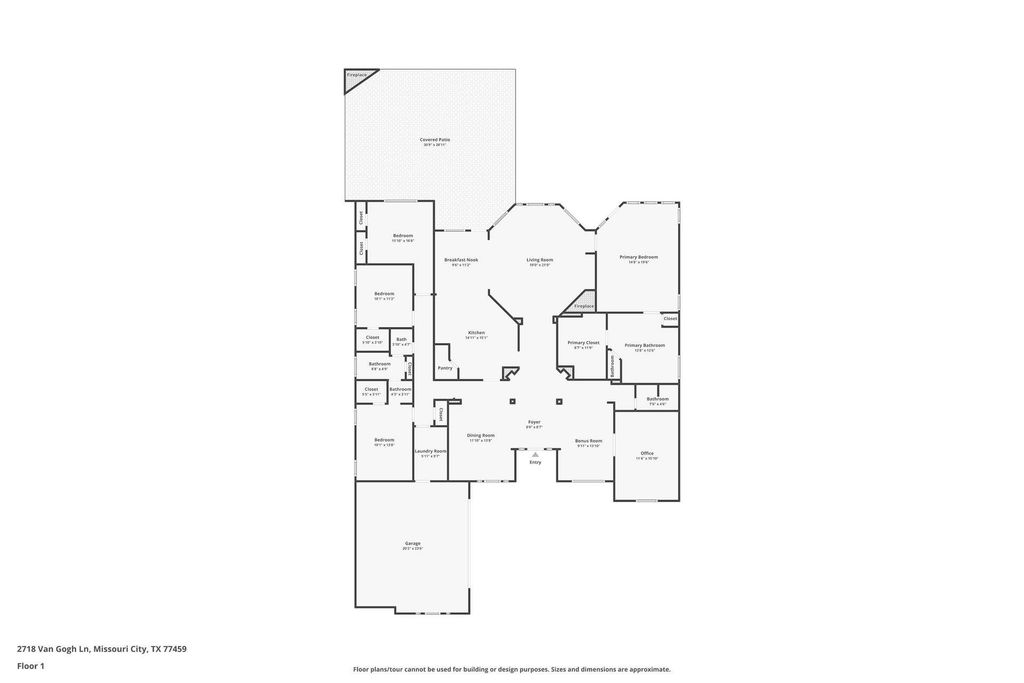 one-story home on a corner lot in Sienna. This four-bedroom, two-and-a-half-bath home features an open layout with large archways; a study, formal dining room, and family room with a gas log fireplace. The kitchen offers slate flooring, granite countertops, and stainless steel appliances. The primary suite includes an ensuite bath, while three generous secondary bedrooms share a Jack-and-Jill bath. The backyard boasts a covered patio, outdoor kitchen, fireplace, pool, and hot tub. Tenants can enjoy full access to Sienna's pools, gyms, water parks, golf course, lakes, and extensive community amenities.