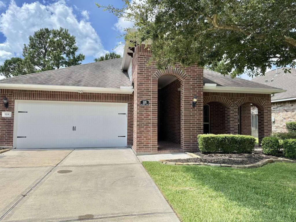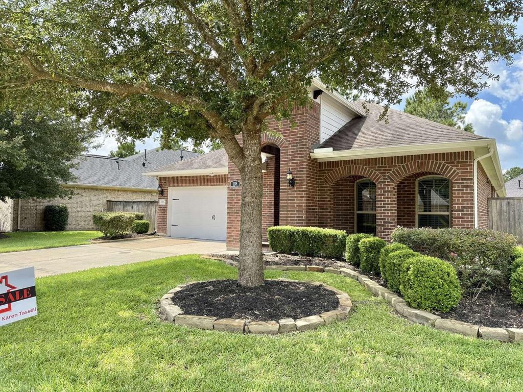 Welcome to your new home in Bonterra at Woodforest! This community is age 55+ buyers looking for a low-maintenance lifestyle in a wonderfully maintained community! Step into the gourmet kitchen with beautiful leathered granite countertops, plenty of cabinet space, and brand new five burner KitchenAide gas stovetop. The primary suite boast a large walk-in shower, 2 sinks both offering extra vanity space, and a massive walk-in closet. This home is sized just right with 2 bedrooms and versatile flex room that could be an office, media room, craft room, or whatever you can imagine. Wood look tile flooring throughout the home with lighter tile in the bathrooms - no carpet! Come outside on the back porch and enjoy the oversized covered patio! Walk to the Bonterra clubhouse one block away where you can enjoy a resort-style pool, fitness center, pickleball, bocce ball, and daily activities! Along with a 27-hole championship golf course. Close to all of the shopping and amenities in Woodforest.