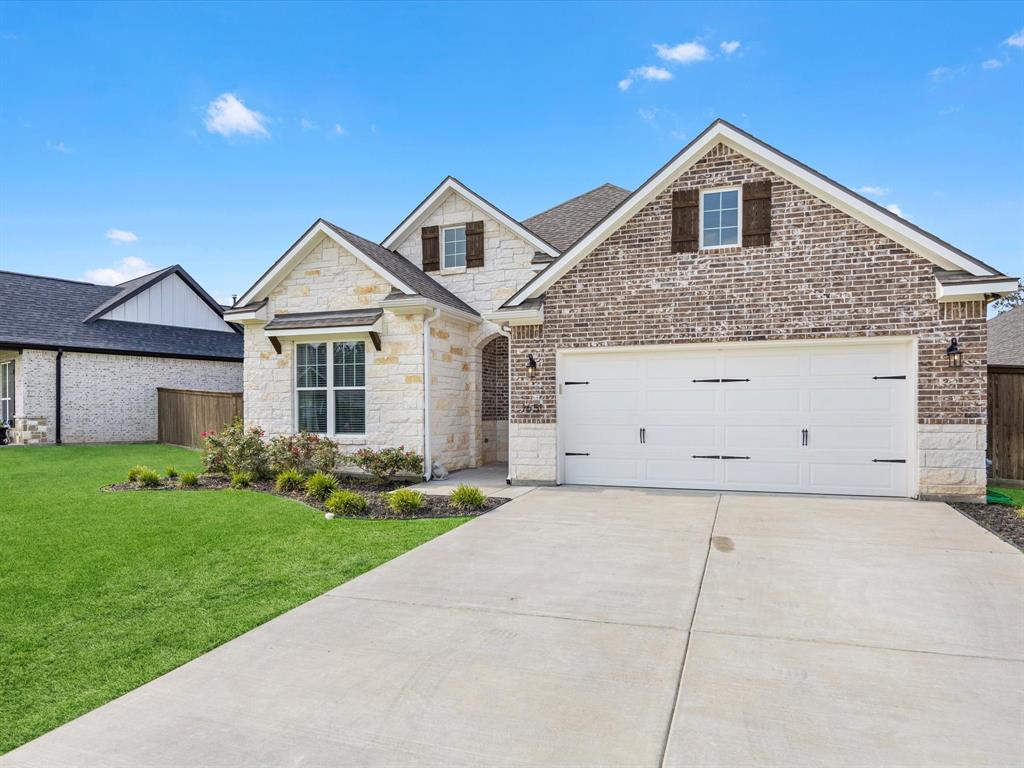 Stunning luxury farmhouse in the coveted Mission Ranch - give your family College Station's premier master-planned lifestyle with priceless privacy, a sprawling backyard, NO REAR NEIGHBORS, and a gorgeous wooded backdrop! Nearly-new (just 2 years old) with a spectacular island kitchen, huge family room with tons of natural light & backyard views, three generous bedrooms + an oversized office or fourth bedroom, and an endless patio! Upgrades throughout, including hard flooring in all common areas, matte black granite countertops, elaborate trim work, and upgraded 5-panel doors...you can have it all right here in Mission Ranch, complete with a resort-style pool, endless walk & bike trails, a state-of-the-art Ranch House amenities center, pickleball, playgrounds, lakes, and even a fishing pond. Don't miss it!