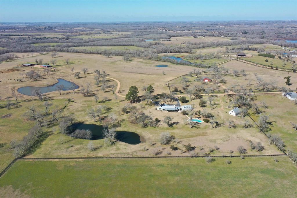 Tucked away just north of Chappell Hill on one of Washington County’s most scenic lanes, this striking 2016 contemporary estate delivers a rare blend of refined design, thoughtful craftsmanship, and wide-open Hill Country views. Designed by BBA Architects and built by Keith Ellis Custom Homes, the approx. 3,660 SF residence is centered around a true central great room with soaring ceilings, skylights, a fireplace, and sliding walls of glass that seamlessly open to expansive flagstone porches overlooking the resort-style pool and pond with fountain. The one-story layout is designed for effortless entertaining, featuring a marble island kitchen with high-end appliances, a walk-in pantry with wine cooler, and light-filled living spaces that capture uninterrupted views in every direction. Set on 11 rolling acres this is a private retreat where indoor-outdoor living truly takes center stage. Properties of this caliber, with this level of privacy and views, are truly one of a kind.