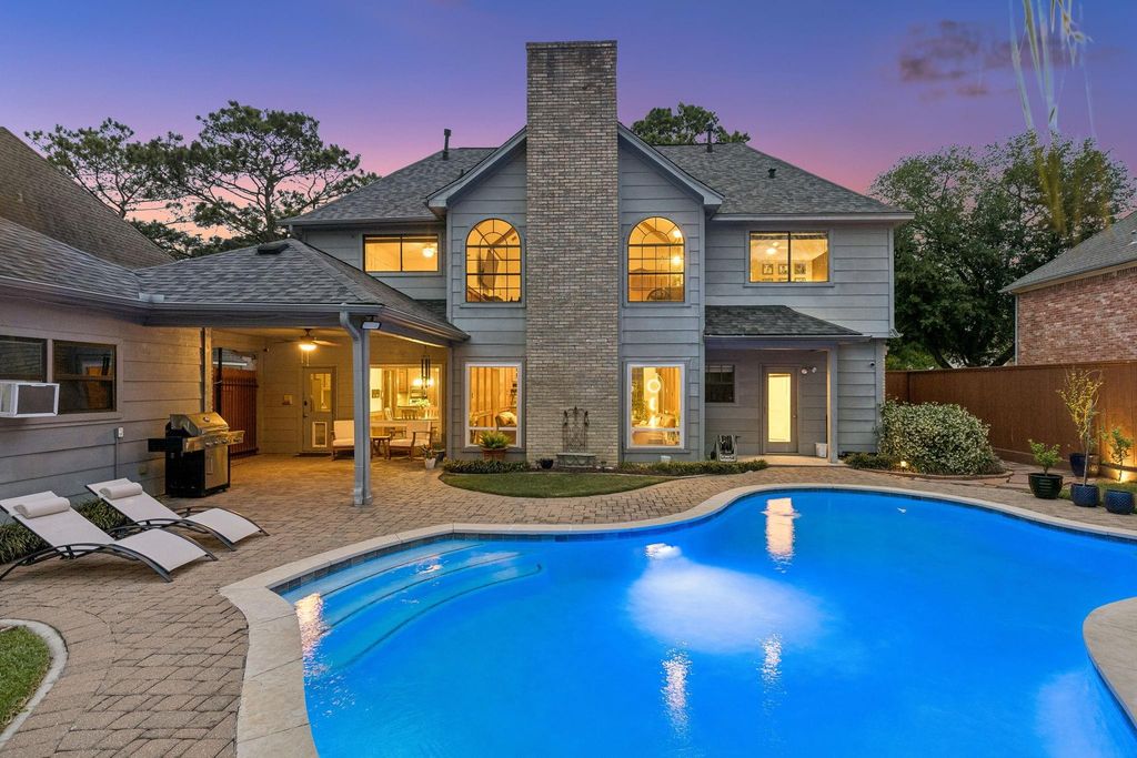 Meticulously maintained and thoughtfully updated in Spring Creek Oaks, this 3,181 SF home offers 4–5 bedrooms and 3.5 baths with a functional and elegant layout. A marble-floored foyer and modernized staircase set the tone, leading into a warm, inviting living room featuring rich wood-paneled walls, a gas fireplace, wet bar, and serene pool views. The spacious kitchen and breakfast room overlook the backyard, with seamless flow into the formal dining room. The primary suite is privately situated downstairs with direct access to the pool and spa, creating a true retreat. Upstairs includes three bedrooms, a versatile study (optional 5th bedroom), and a large game room with vaulted ceilings overlooking the pool. Recent upgrades include fresh paint, beautiful stone-like tile downstairs, a new privacy fence, pavers, and stunning outdoor lighting, with over $120,000 in improvements and exceptional care throughout, this home offers both comfort and style. Schedule your private showing today!