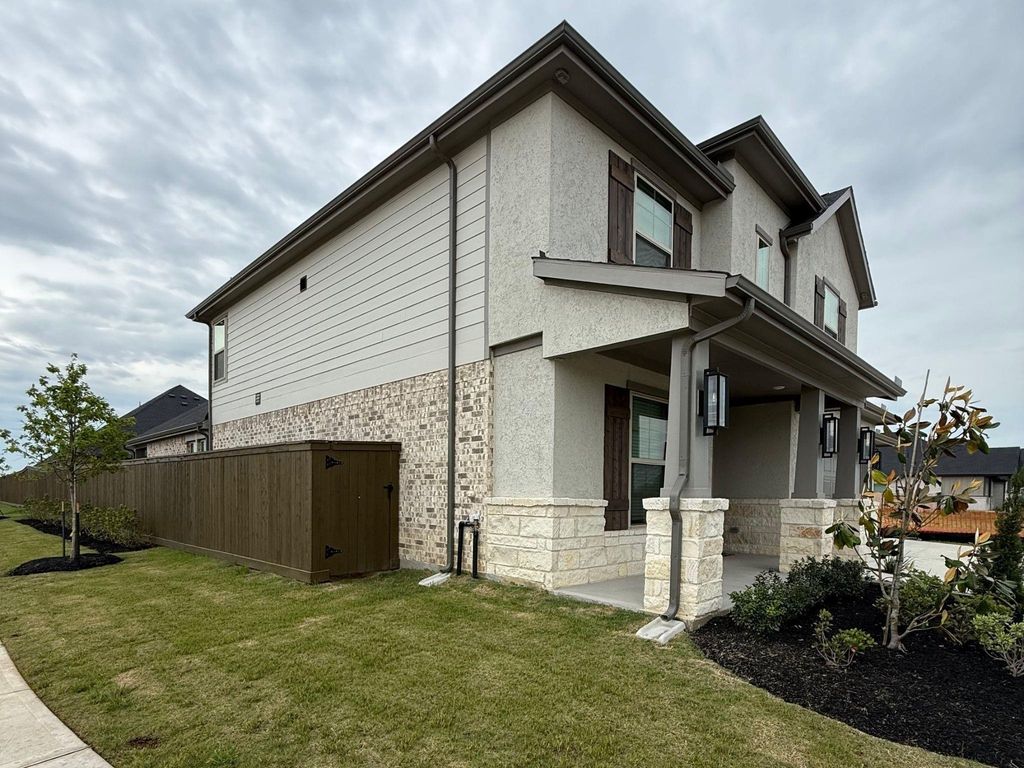 Welcome to the master-planned community of Attwater in Waller, Texas, this two-story home on an oversized corner lot offers a functional layout with quality upgrades throughout. This stunning 4 bed, 3.5 bath, 3-car garage with a pull-through bay offers a private study, open-concept living area, and an amazing primary suite. Interior highlights include high ceilings that create a bright and airy feel. A multi-slide glass door that enhances the living space and provides a seamless indoor-outdoor flow. The kitchen features quartz countertops, Bosch appliances, built in coffee maker, wine fridge, walk-in pantry, and ample cabinetry. The primary suite includes dual vanities, oversized shower, soaking tub, and an amazing walk in closet. Upstairs includes a game room and a media room. Residents of Attwater will enjoy a welcoming neighborhood atmosphere and convenient access to HWY 290 that will be a commuters dream. Plan your tour now...there's so much more to see.