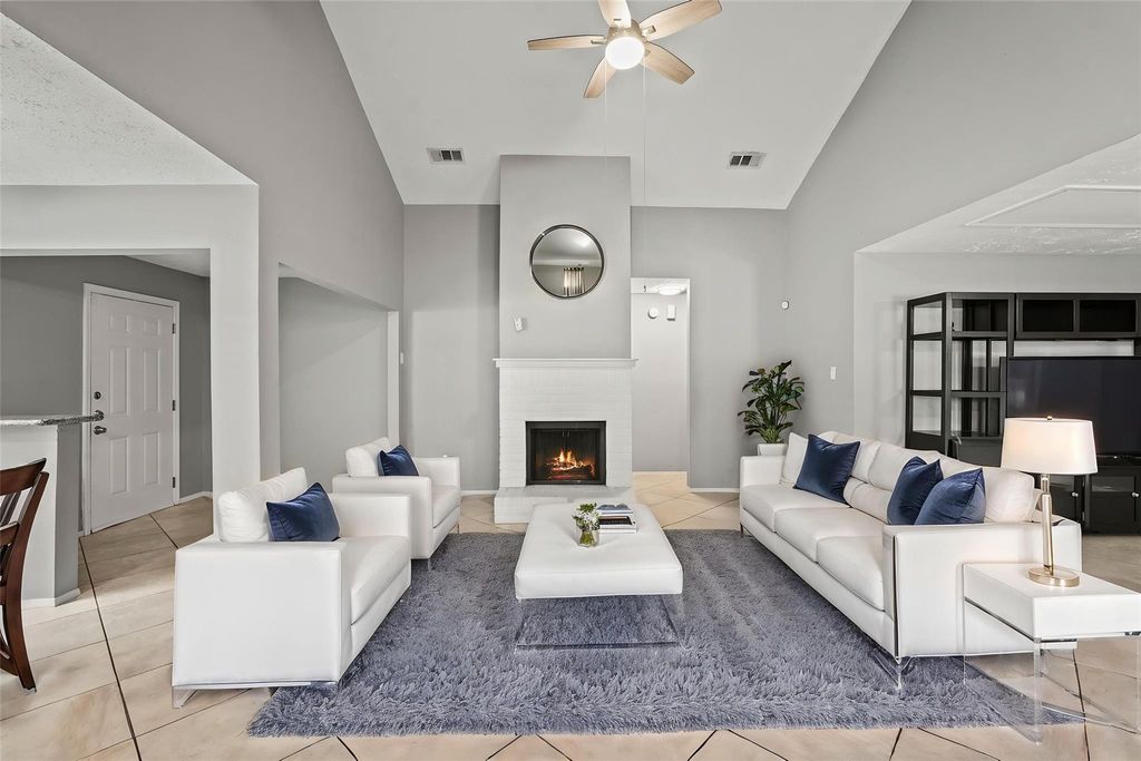 Welcome to 19255 Cypress Canyon Dr, a charming one-story traditional home nestled in the Cypress Meadow subdivision. This residence offers functional living with notable updates, including a new roof and fencing replaced within the past two years. The interior features durable tile flooring throughout and high vaulted ceilings. A cozy wood-burning fireplace anchors the comfortable living area, while a separate den provides a versatile secondary space for relaxation. The well-appointed kitchen is open to the family room and features granite countertops and convection appliances. The property includes two bedrooms and a full bathroom. Outside, the spacious backyard is fully fenced for privacy and offers generous green space for outdoor activities. This practical home includes storm windows for energy efficiency and is conveniently located within walking distance of various stores. Experience comfortable living with a community pool and more. Call us to schedule your private tour today.