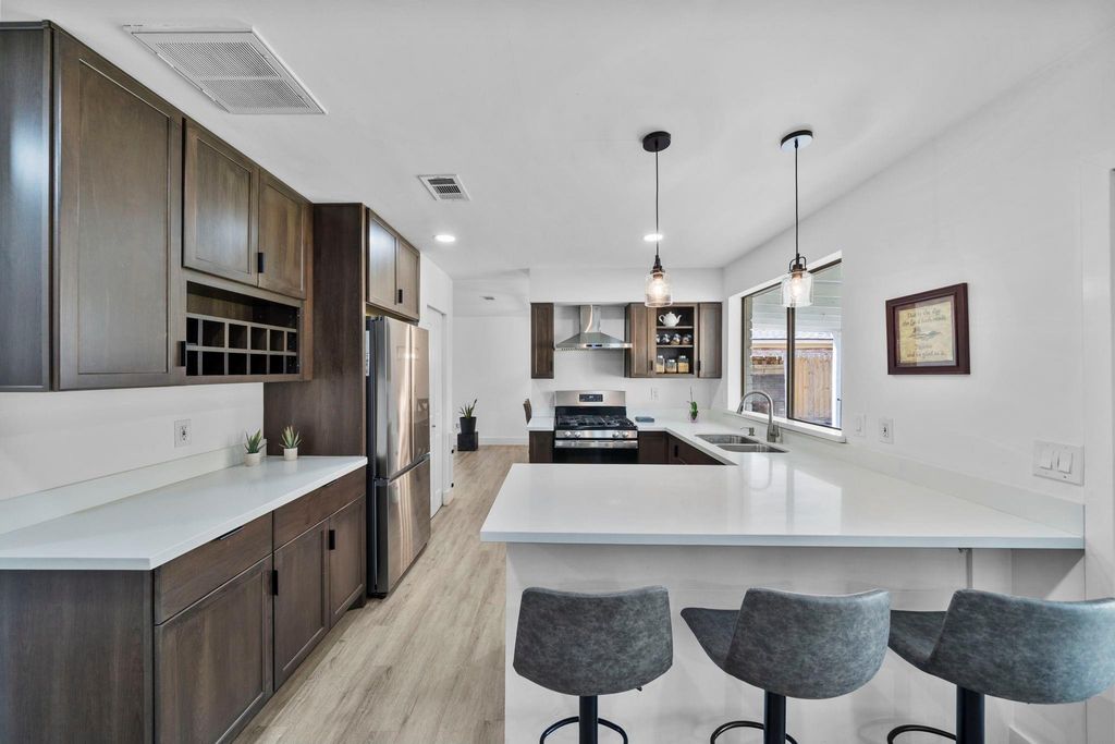 Fully remodeled in 2021 with a stunning modern farmhouse feel. This house features updated recessed lighting, plumbing, flooring, bathrooms, kitchen, and interior paint throughout. Warm and cozy feel inside with an open layout including two spacious living areas, a dedicated home office, and 3 bedrooms. Stylish kitchen with quartz countertops. Gorgeous primary suite with a custom walk-in closet. Massive laundry room + Ring camera system. Oversized backyard with covered patio and outdoor fireplace, perfect for entertaining. Prime location with quick access to highways and Jones Rd for shopping, dining & entertainment just minutes away. Come see this house today!!