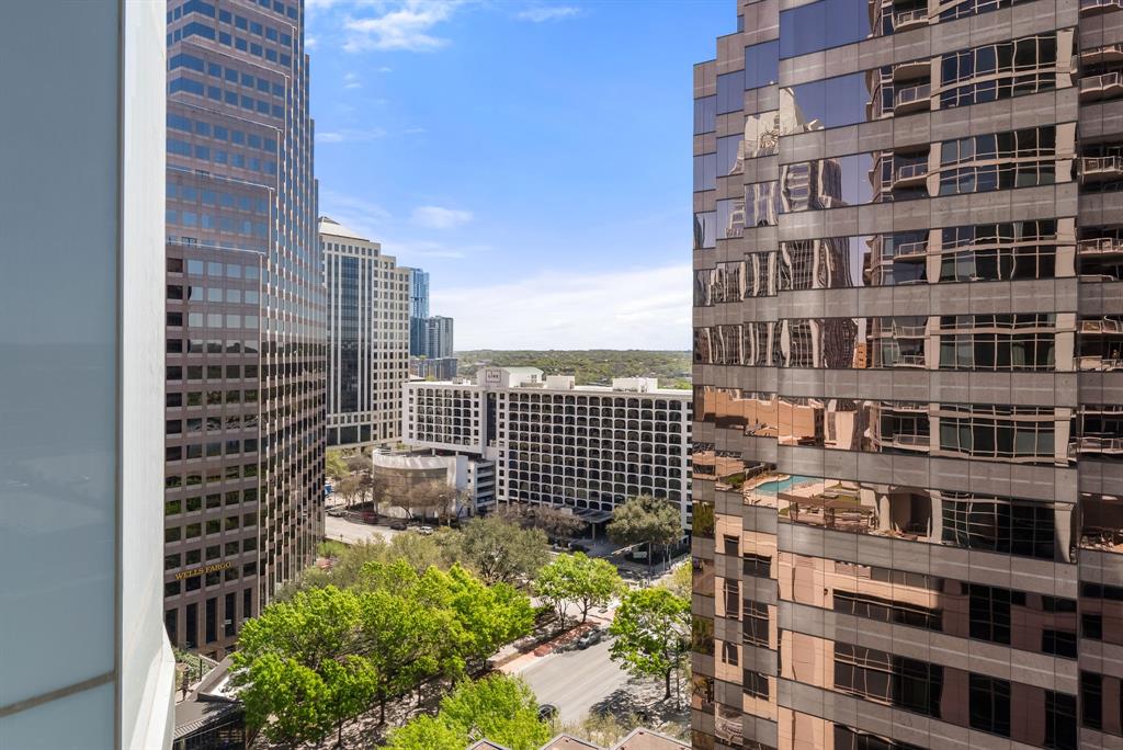 Positioned on the southwest corner of the 14th floor, Residence #14C offers a rare combination of scale, natural light, and sweeping Downtown Austin and Lady Bird Lake views within one of the city’s most iconic addresses, The Austonian. This 2-bedroom, 2-bath residence is thoughtfully designed with an open living anchored by rich wood flooring and framed by expansive windows that capture dynamic skyline and water views. The open-concept living space extends seamlessly to a covered balcony, creating an effortless indoor-outdoor connection ideal for both everyday living and entertaining. The primary suite is a true retreat, featuring a dedicated sitting area and a spa-inspired bath complete with dual vanities, a soaking tub, and a separate walk-in shower. The kitchen is outfitted with a premium appliance package, including a Sub-Zero refrigerator/freezer, Wolf oven and convection microwave, and Miele dishwasher, complemented by custom finishes throughout. The offering includes two reserved parking spaces, providing added convenience in the heart of downtown. The Austonian is widely regarded as Austin’s premier residential tower, offering over 40,000 square feet of curated amenities for approximately 174 residences. Residents enjoy valet parking, 24-hour concierge and security, a 56th-floor fitness center, and a recently renovated lobby and 10th-floor amenity level featuring an expansive pool and hot tub deck, BBQ areas, fire pit, spa treatment room, guest suites, catering kitchen, indoor and outdoor entertaining spaces, dog park and grooming stations, theater, and bike storage. Perfectly positioned in the center of downtown, the building offers immediate access to the Texas Capitol, world-class dining, business districts, and Austin’s vibrant entertainment scene. Tax and assessed values are estimates for illustration purposes only. All figures should be independently verified.
